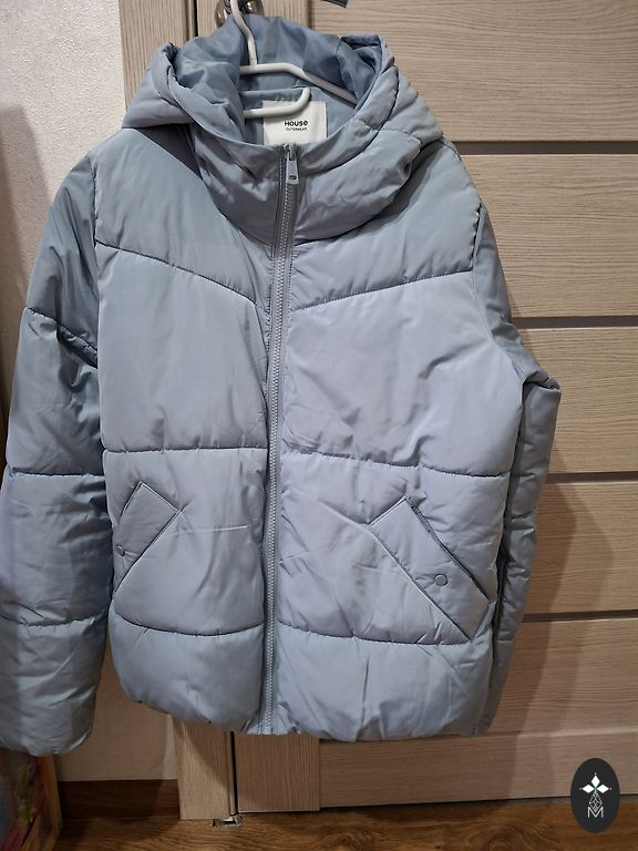 Tamsiai mėlynos spalvos liemenė, šilta, krūtinės apimtis ne daugiau kaip 150 cm.