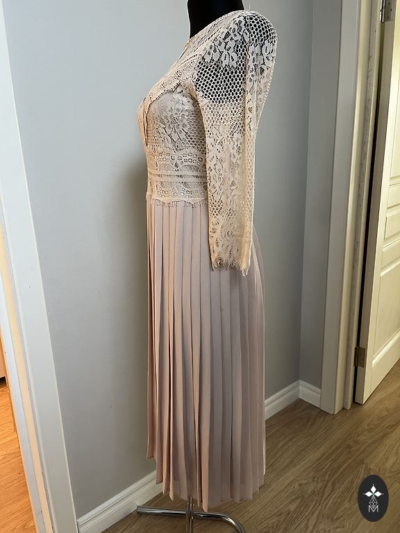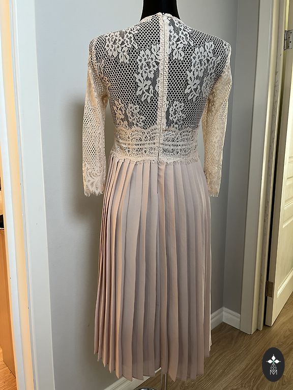 Платье подойдет для носительницы 36 размера. Приятный материал. 96% хлопок, 4% эластан. Грудь - 90 см - 100 см, талия - 80 см, длина платья - 100 см.