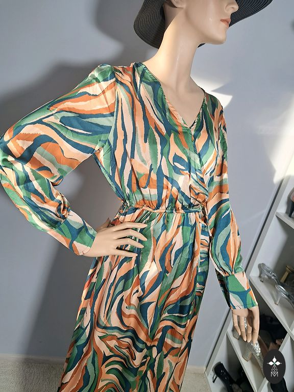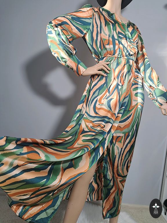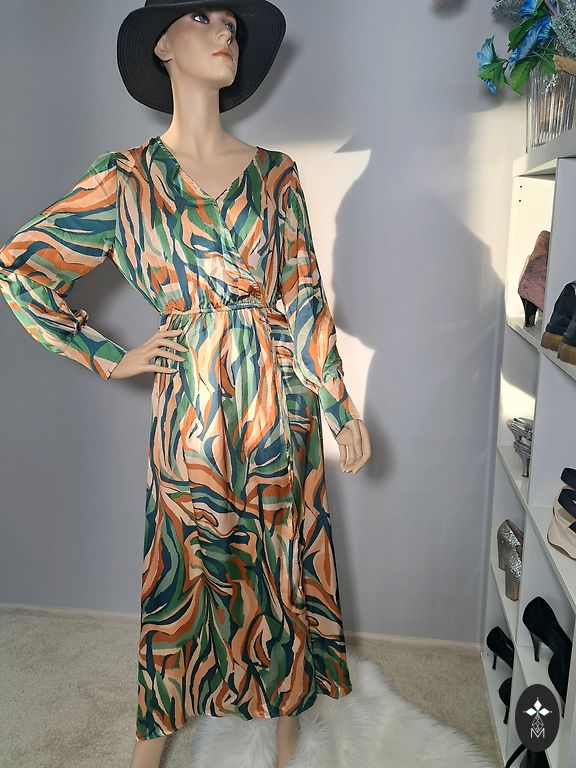 Krūtinės plotis 46cmx2, suknelės ilgis 124cm.