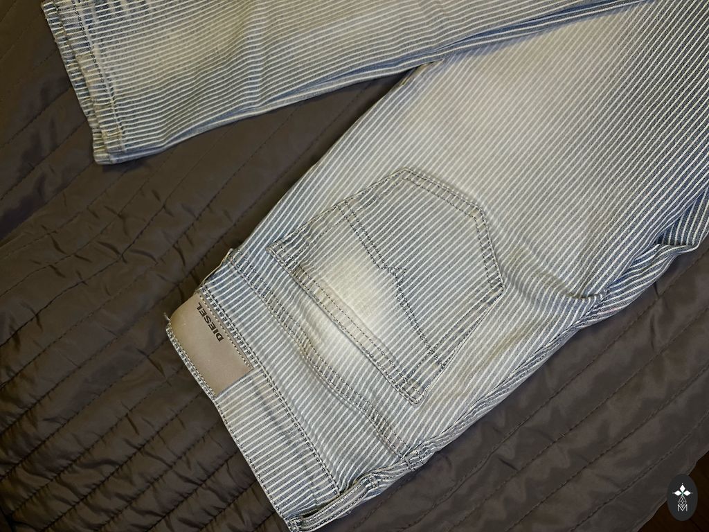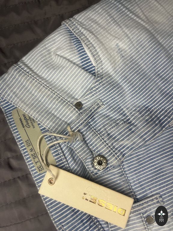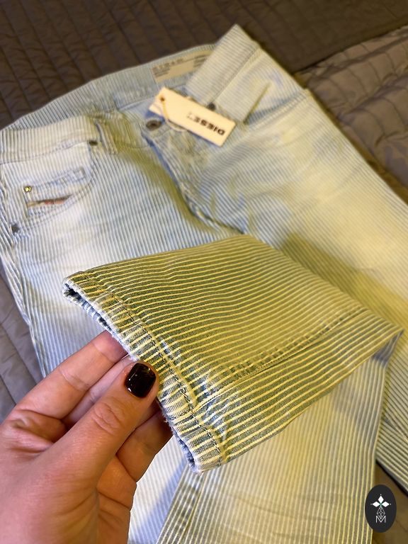The CLOUD model is made from non-stretch denim with a low waist, loose fit, and wide legs. Zipper closure. Inside leg length 78 cm. Size 28.