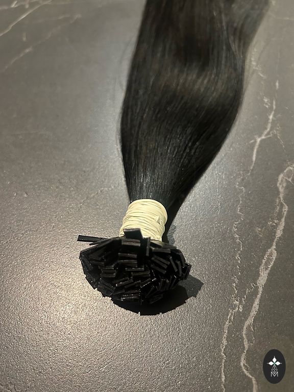 Parduodu 3 mėnesius nešiotus Mellas True Hair plaukus, juodi, 50cm