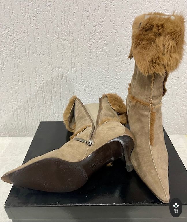 натуральной овчины, обеспечивающая исключительный комфорт и тепло в самые холодные дни. Ботинки предлагают точную итальянскую размерную сетку, комфортную посадку и характерное для бренда высокое качество исполнения. Идеальный выбор на каждый день и для прогулок в холодный сезон, сочетающий в себе дизайн известного бренда с максимальным утеплением.// Stilīgi un ārkārtīgi silti ziemas apavi no slavena Itālijas dizainerzīmola ALBERTO GUARDIANI (kolekcija "SPORT"). Modelis "Karina" ir izgatavots no mākslīgās zamšas un dekorēts ar dabīgas krāsotas truša kažokāda apmali. Iekšpusē – siltumuzglabājošs dabīgas aitas ādas oderējums, kas nodrošina neparastu komfortu un siltumu aukstākajās dienās. Zābaki piedāvā precīzu Itālijas izmēru, komfortablu valkāšanu un raksturīgo brendam augsto kvalitāti. Ideāls izvēle ikdienai un izklaidēm aukstajā sezonā, apvienojot slavena zīmola dizainu ar maksimālu siltumu.