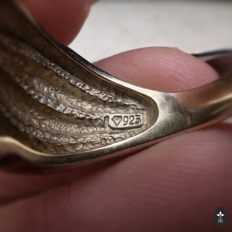 Masinis, neįprastas sidabrinis žiedas su rožiniu kvarcu. Atvežtas iš Lietuvos amatininkų mugės. Dydis 54 (17,2). Svoris 15,99g.