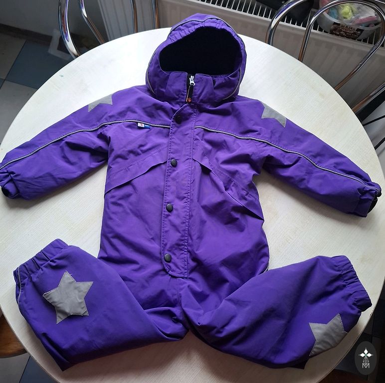Rudenį nusipirkome Decathlone, tačiau dukra taip greitai užaugo, kad spėjo apsivilkti tik kelis kartus. Kelnės tvirtinamos prie striukės. Su pirštinėmis. Dydis: 91-104