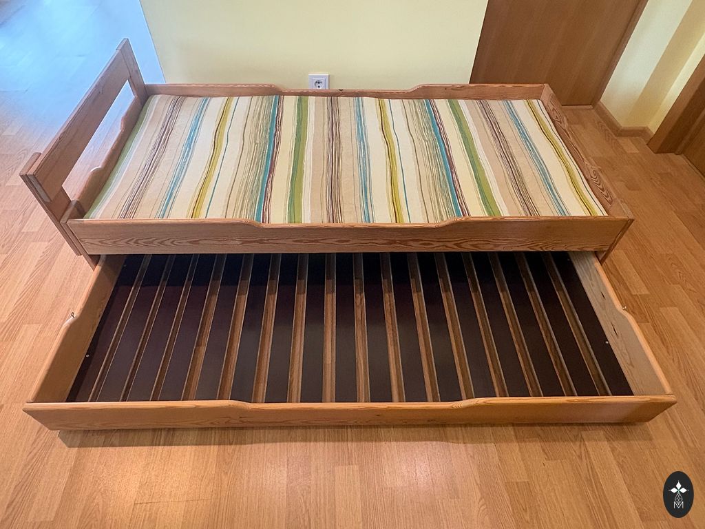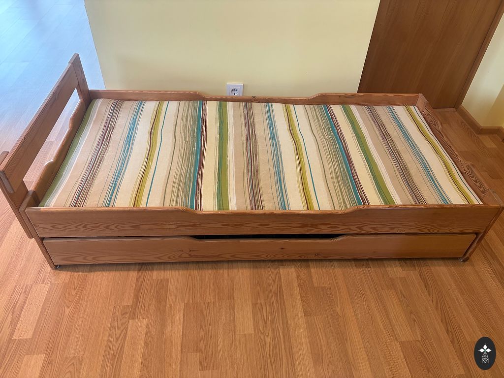 Кроватка IKEA Sundvik коричневого цвета основные части массив бука. В хорошем состоянии, но есть следы эксплуатации царапины (сделаю видео по запросу). Размер 60*120 см. 3 уровня высоты матраса, 2 заводских, один дополнительный делали себе для удобства, съемная одна боковая панель. В комплекте бортик