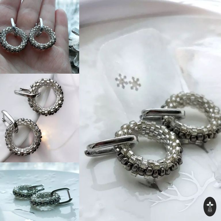 3D rombo formos auskarai iš japoniškų karoliukų.
