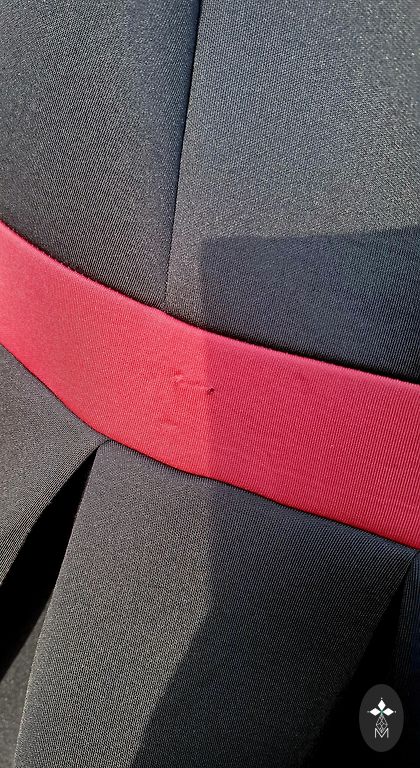 Aizmugurē rāvējslēdzējs un poga. Muguras augšdaļa nedaudz atkailināta.