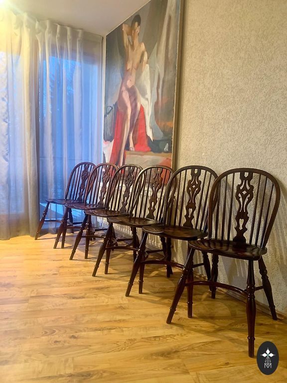 Small-sized armchair that can be a great design element. Cleaning and leg repair needed. The picture shows that the seat is worn.