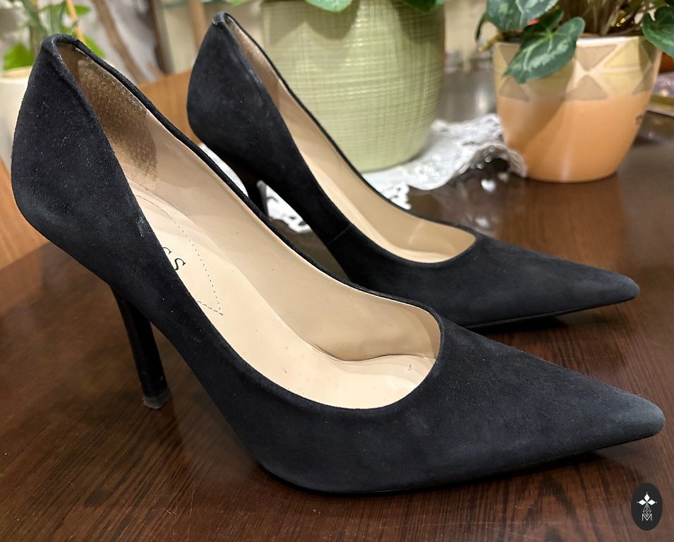 Suede high-heeled shoes