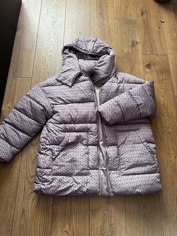 Krūtinė 64cm x2, klubai 67cm, apatinė dalis 70cm, bendras ilgis 81cm, rankovė nuo peties 68cm, nuimamas gobtuvas, reguliuojamas tiek su sutraukiamais raišteliais, tiek su sagomis, vidinė krūtinės kišenė, juosmu reguliuojamas su sutraukiamais raišteliais, dvigubas užtrauktukas ir spaudės, rankovių dalyje įsiūtos skylės nykščiui, lengva, pūkuota, bet labai šilta.. ant etiketės 44 dydis, bet tikrai tiks ir didesniam..
