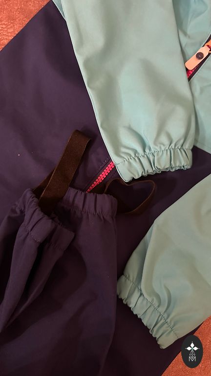 Pirktas naujas, dėvėjo vienas vaikas. Striukė turi pamušalą, kelnės neturi. Trūkumas - atspindinti juosta šiek tiek atsilaisvinusi, bet ją galima prisiūti. Siuntimas į kainą neįskaičiuotas.