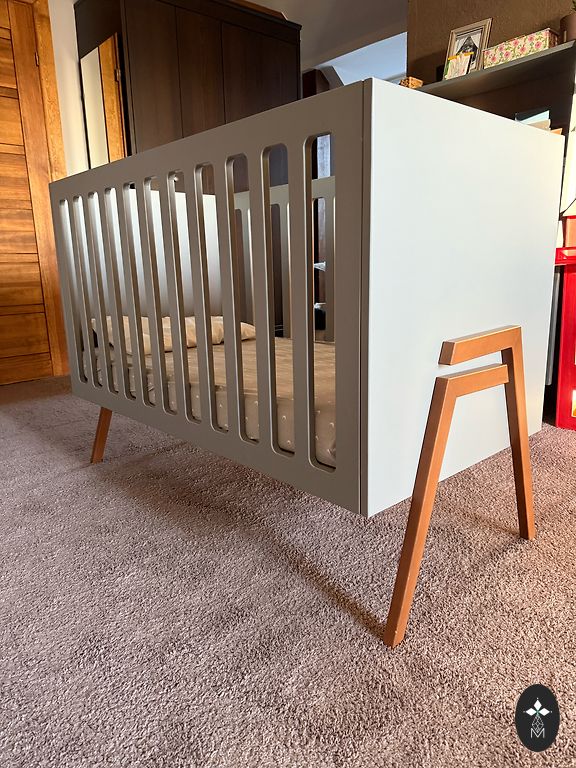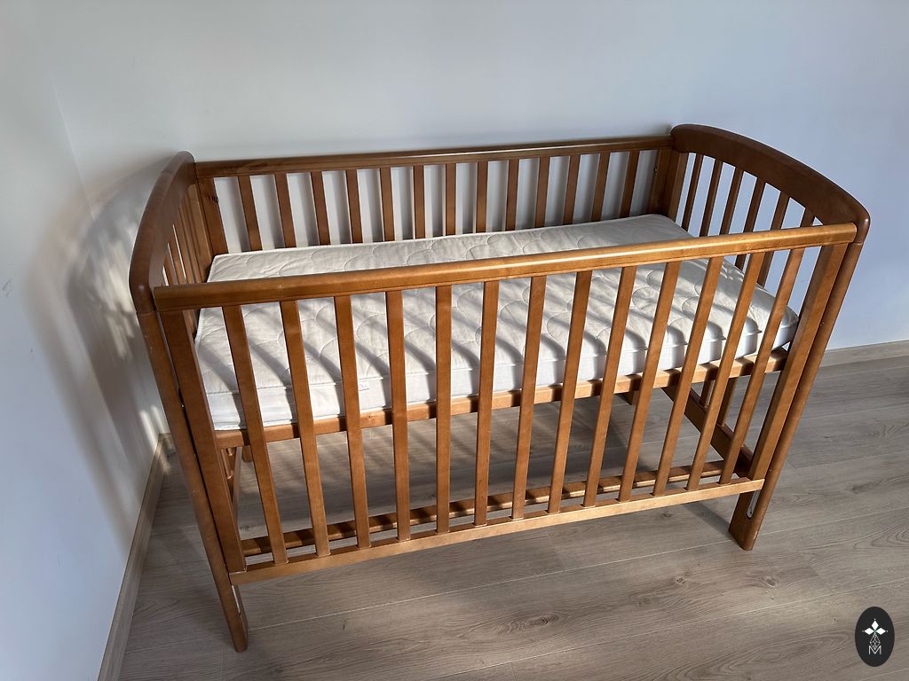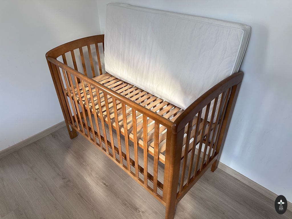 Кроватка в хорошем состоянии. Кровать легко разбирается — между боковыми конструкциями есть 5 досок, которые крепятся с помощью винтов.