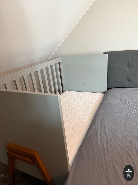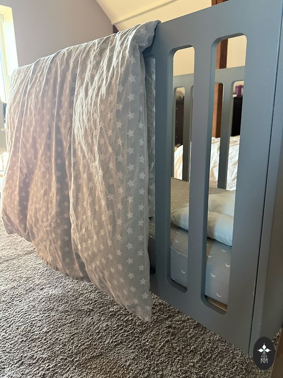 Идеально подходит как переходная кровать от маленькой детской кроватки к большой кровати — безопасна для ребенка и спокойствие для родителей, что малыш не выпадет и не ударится.