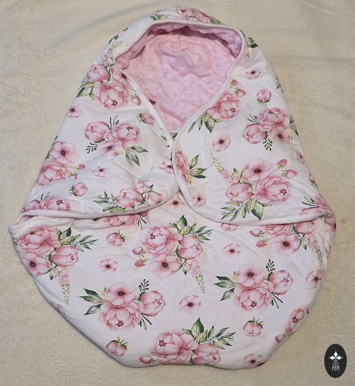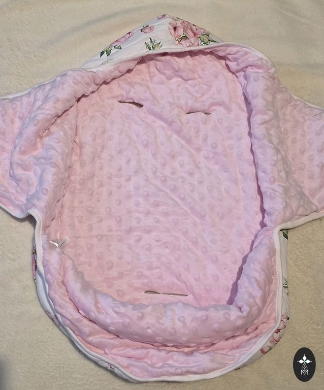 Noņemama mīksta mākslīgā kažokāda, savelkama kapuce.Iekšpusē konvertiņš ir ļoti mīksts un samtaini maigs — kā mākonītis.