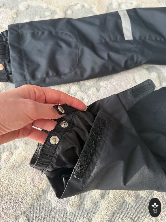 Ziemas slēpošanas bikses, apakšā odrei gumija, kas uzliekas uz zābaka, plus regulējas apakšas staras platums ar ļipučku. Noņemami bikšturi.