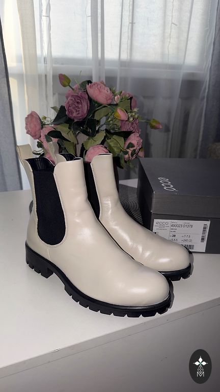 Sieviešu ziemas puszābaki Ecco ar gore-tex membrānu (necaurlaidīgi), ar diviem rāvējslēdzējiem, uz ne pārāk augsta pacēluma. 24,5 cm pēc iekšzoles.