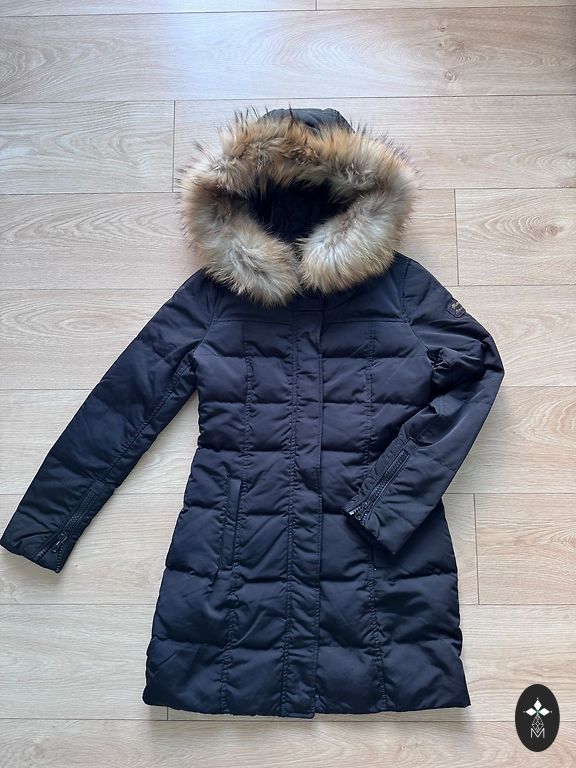 Jaka ir ļoti bieza, blīvi pildīta (pīles dūnas), ar dziļu kapuci, nopogājamu mākslīgās kažokādas apmali, dziļām sānu kabatām, kas aizveramas ar spiedpogu, un ar robustu, izturīgu plastmasas rāvējslēdzēju, kas verams abos virzienos. Mugurpuses garums 80 cm, priekšpuses – 74 cm. Piedurkņu galos iekšpusē piegulošs trikotāžas valnītis. Uzvilkta pāris reizes, kā jauna.