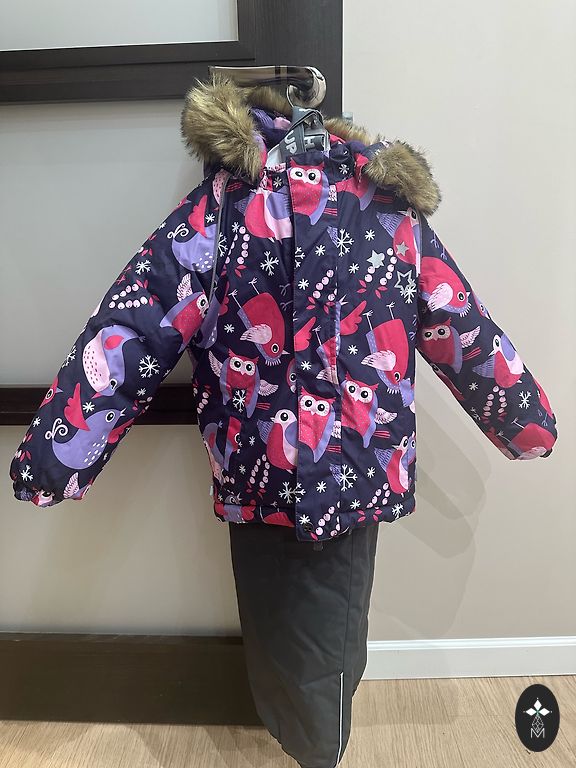 Huppa winter suit size 92. The pants are in very good condition, not torn, with insulation inside. The jacket is worn, the fabric is slightly frayed in some places, but it's not noticeable visually because the pattern covers it. Inside, the insulation is clumped, but it can still be worn for garden activities and enjoy winter fun! ❄️⛄️