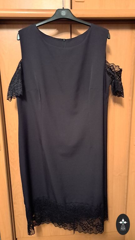 Graduation dress with short sleeves and a decorative lace hem at the bottom of the dress, size 44. Fastened with a zipper at the back of the dress.