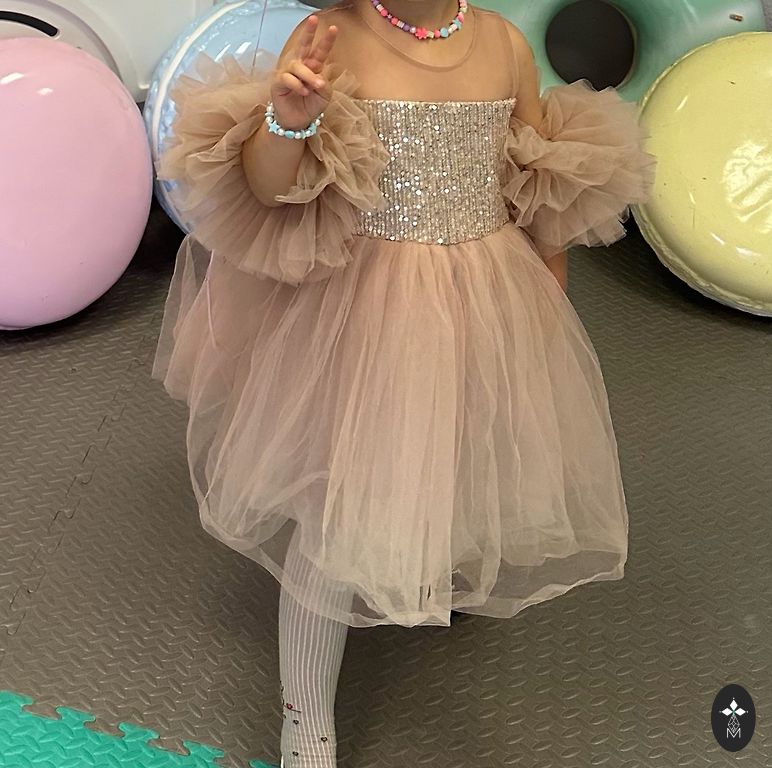 Müüa imeline ja kaunis laste peokleit õrna roosa värviga. Suurepärane valik lasteaia lõpupeole, sünnipäevapeole või mõneks muuks eriliseks sündmuseks.
