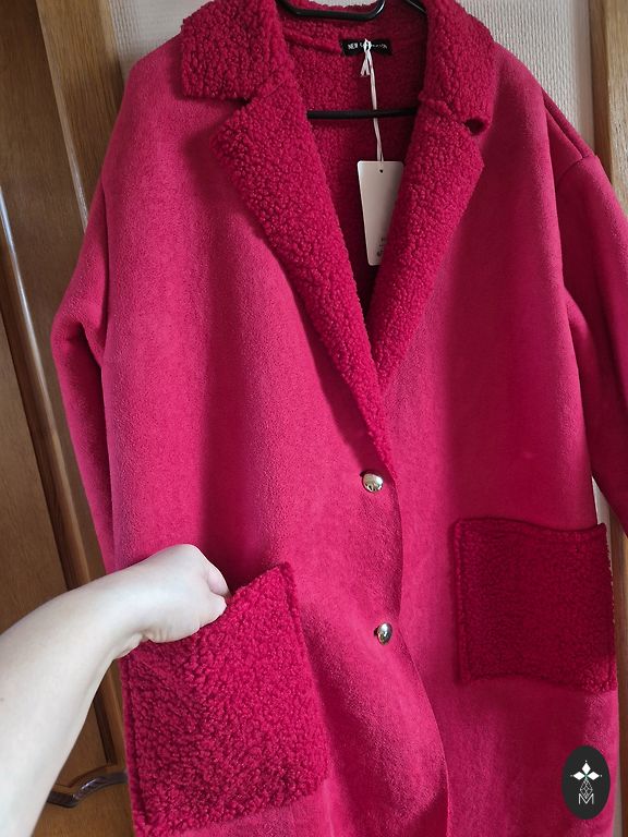 Tikra superperla stilingai damai! Ryškiai raudona! Strand Studio - švedų dizainas už prieinamą kainą. Įdomus audinys - traškus, su plonos, blizgios, dirbtinės lako efektu. Kokybiškas atlikimas. Kirpimas - laisvas - tinka nuo M iki XL dydžio figūrai. Ilgis 120 cm. Plotis - krūtinėje 120 cm, klubų 140 cm, apatinė dalis 170 cm. Rankovės + pečiai - 75 cm, platus - apatinėje dalyje 36 cm. Yra kišenės ir mažytė vidinė kišenė su užtrauktuku. Užsegamas, yra atsarginė sagutė maišelyje. Smėlio spalvos pamušalas. Na, paltukas kaip saldainis! 💋