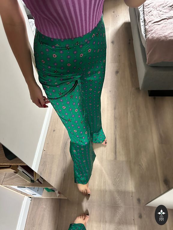На моих брюках указан размер 36, но лучше подойдет на XS. Твидовая блузка размер 1 (36).