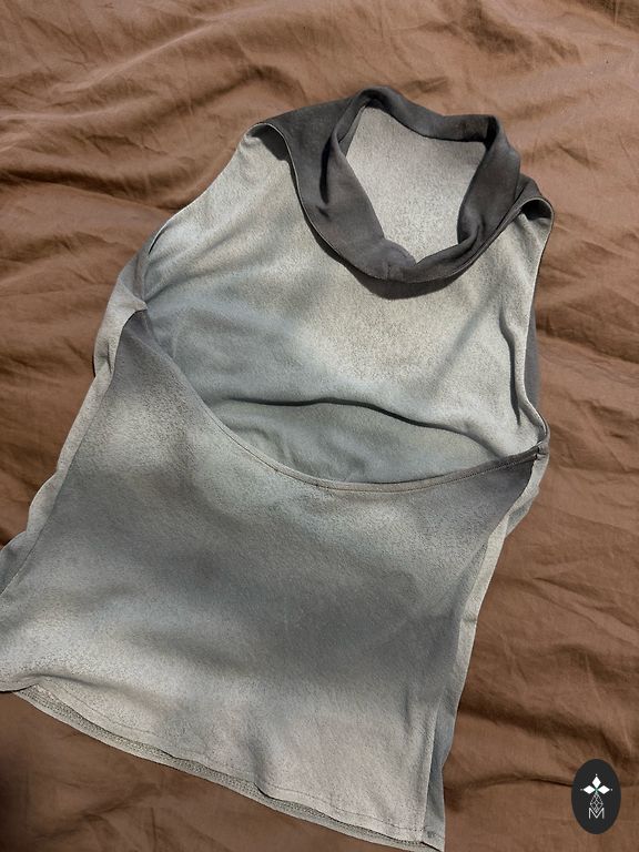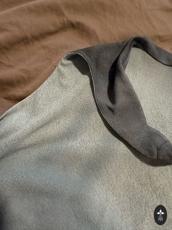 Smalka samtiga auduma ar jakas efektu ,dzīve tonis zaļganīgpeleks garums 80-90.zem padusem 60.gurnos 65cm .tonis marinas atkariba no gaismas.pelēcīgi zaļganzils