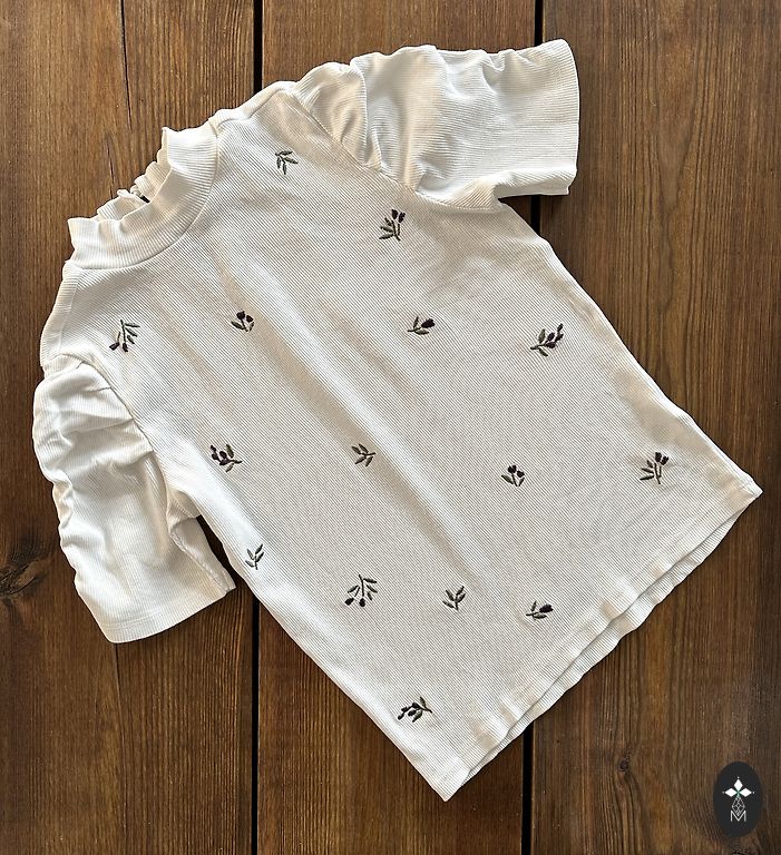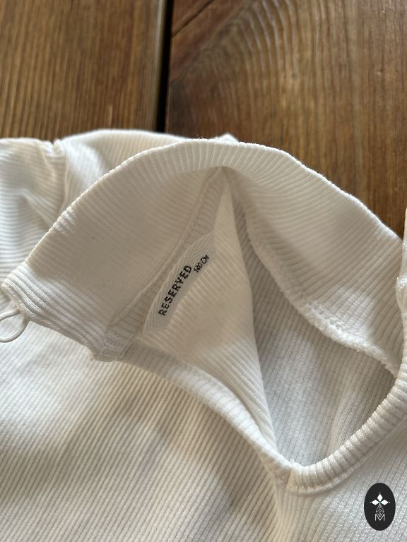 Baltajam kreklam, fotografējot, pamanīju nelielu traipiņu (esmu pārliecināta, ka to var izmazgāt ar saimniecības ziepēm vai traipu tīrītāju).