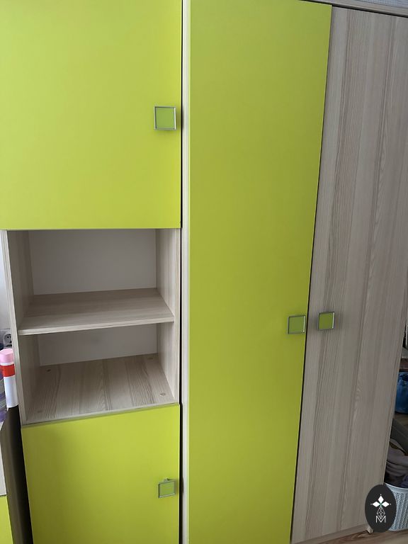 Children's room furniture set. Wardrobe, shelf, drawer-storage box.