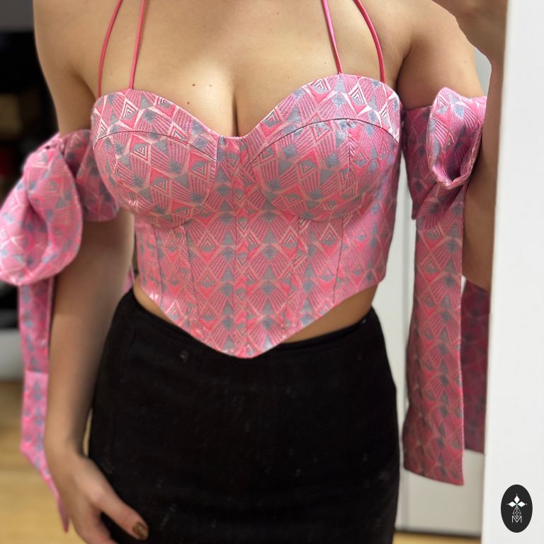 Ļoti efektīgs un ērts topiņš. Audums ir mīksts (samtains), uz pleciem smukas mežģīnes. Pārdodu, jo esmu nomainījusi stilu un šis vairs nepiestāv manai tagadējai garderobei. Bet pats topiņš ir superīgs un noteikti pelnījis, lai to izved "tautās", nevis tur skapī.