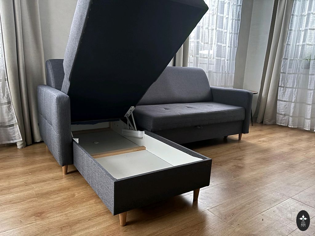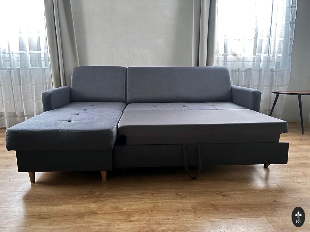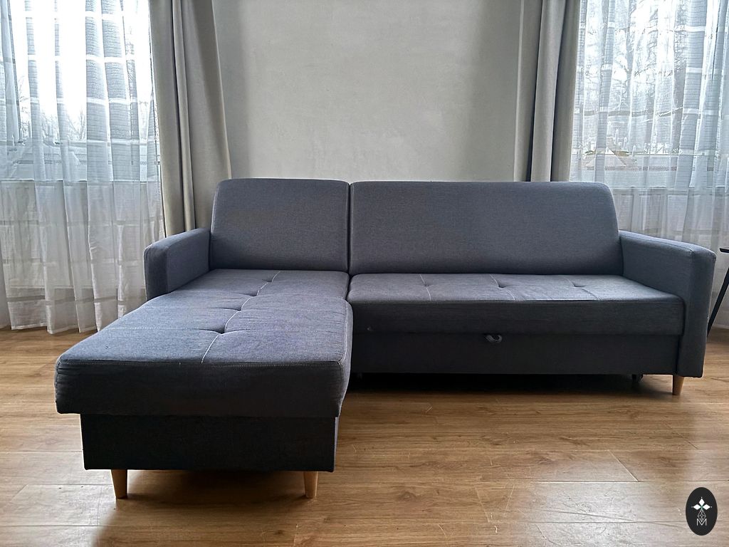 Ištraukiama kampinė sofa 300x200cm su universaliu kampu.