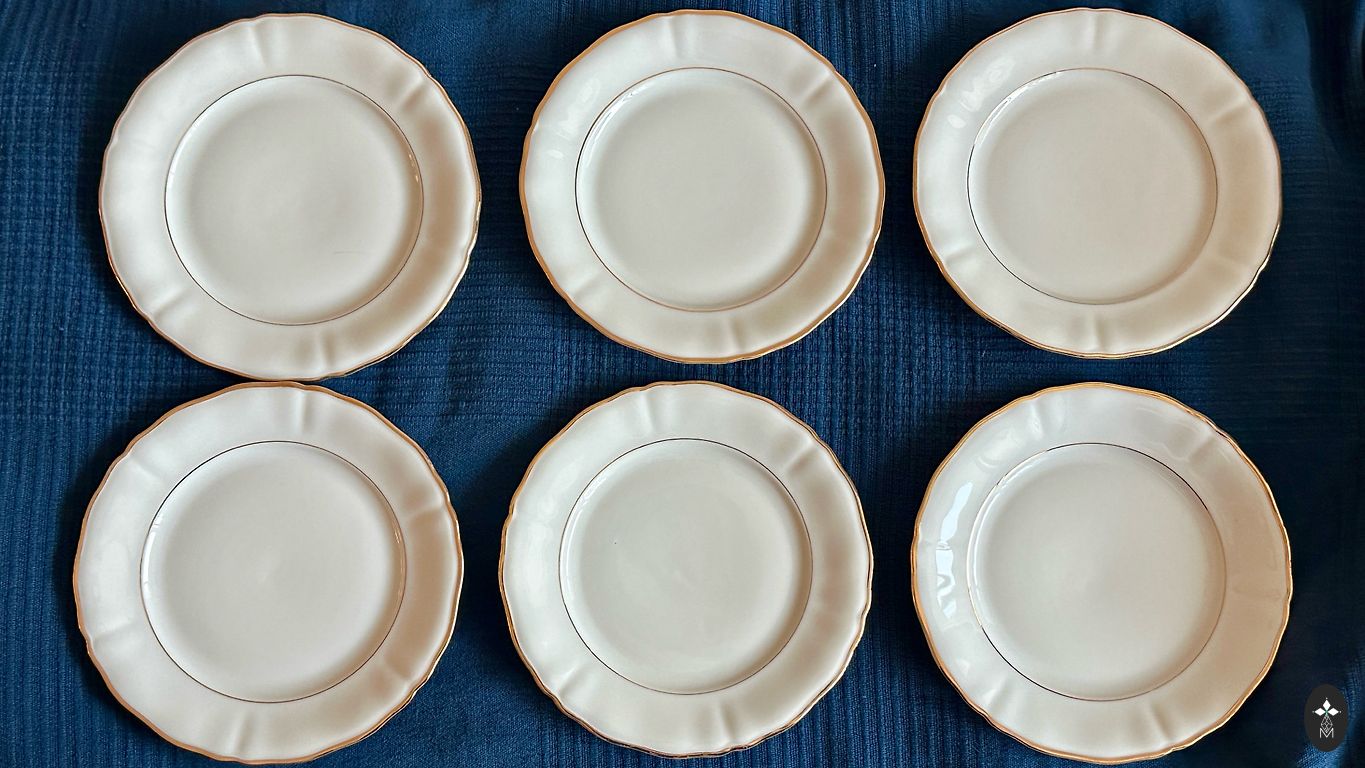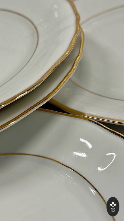 Lai kuldne ornamentaalne ääreosa on peenelt kujundatud ja tõestab ajastut, mil portselani kaunistamisel kasutati veel laialdaselt päris kulda. Selline dekoratsioon muutus hiljem üha haruldasemaks, mis suurendab selle komplekti kollektsioneerimisväärtust.