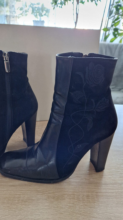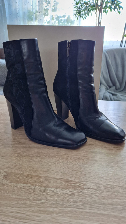 Kelis kartus užsidėti zomšiniai batai. Labai patogūs! Batų viduje oda.