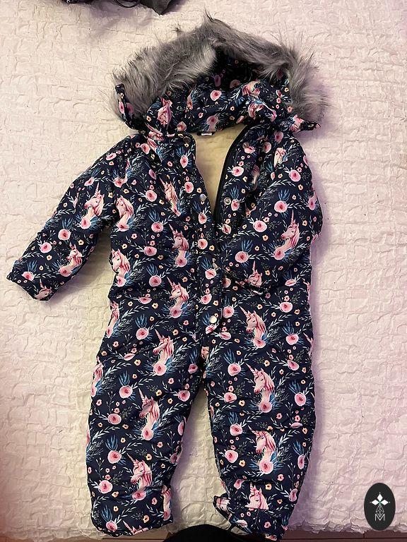 Dydis 90, su galimybe pratęsti (neatardytas). Be etiketės. Kelnės tik pabandytos. Striukė dėvėta 2 kartus, kaip rezultatas nedidelis defektas - 1 sagutė minimaliai subraižyta (žiūrėti nuotrauką), kitaip naujas komplektas. Suklydome su dydžiu. Kelnių, mano nuomone, puiki funkcija, kad jas nusivilkti nereikia atsegti striukės ir nuimti kelnių petnešas, pakanka atsegti kelnių užtrauktuką.