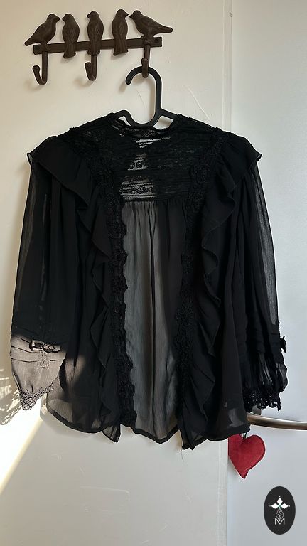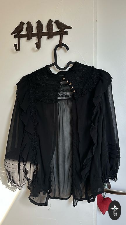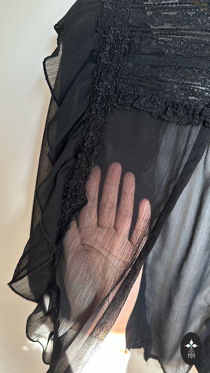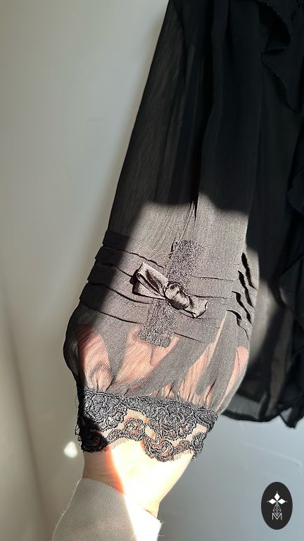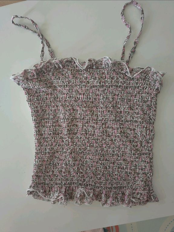 Fantastic blouse with a slim waist and matching bottom. The wrinkle from the closet (pictured) will be ironed out, catching the light while it was.