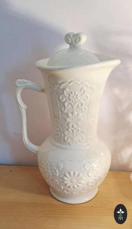 Egg dish with a lid and a decorative figure - a rabbit. The egg dish has some minor visual defects. Rabbit height 26cm, dish height 19cm, 16x22cm.