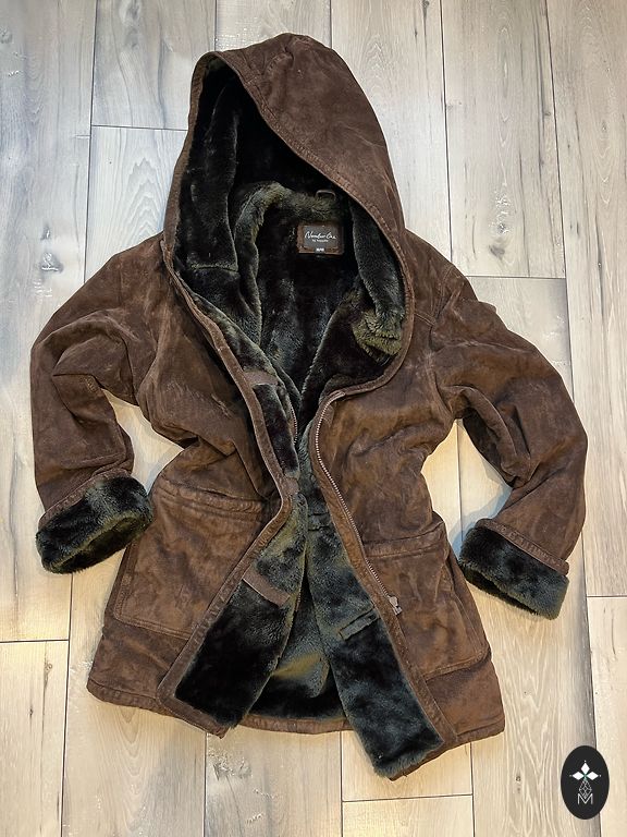 Kapuce ar mākslīgās kažokādas apdari.