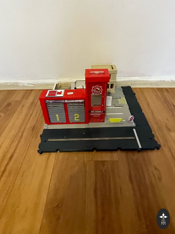 Gaisrininkų depas kartu su dviem gaisrininkų mašinomis. Mašinos turi įbrėžimų. Viskas veikia, tik reikalingos mažos plokščios baterijos, nes garsas jau silpnėja. Pačiam depui trūksta mažos detalės - įvažiavimo barjero, kurį ranka galima pakelti į viršų.