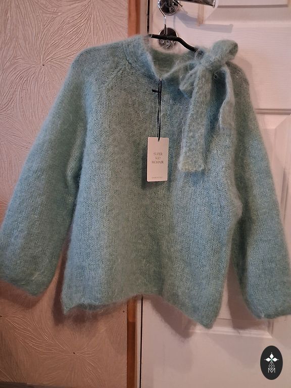 Новый джемпер, купленный во время эфира с итальянской фабрики. Нет бирки, но фабрика славится изделиями с мохером и альпакой, поэтому в составе шерсть и мохер. Длина джемпера 57см, обхват груди 140см