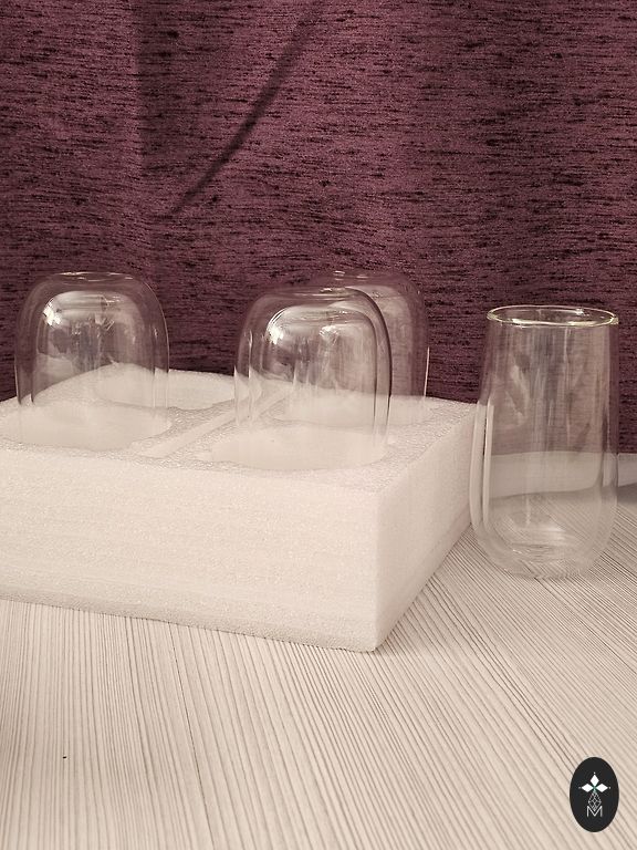 Stiklo karafas su kamščiu ir 6 stiklinės originalioje dėžutėje. Stiklinių talpa yra 85 ml, karafos talpa yra 780 ml. Visa komplektas pagamintas Italijoje. Galima plauti indaplovėje. Pristatymas į kainą neįskaičiuotas.