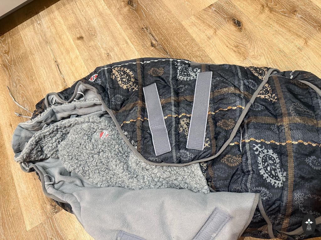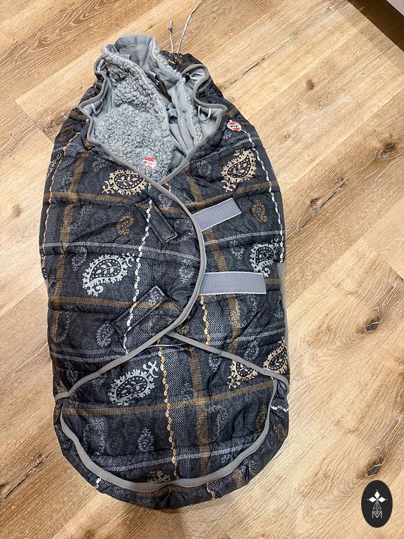 Тёплый, состоит из двух частей, белая часть съемная, можно затянуть и подогнать под рост ребенка, будет греть до 3 лет.