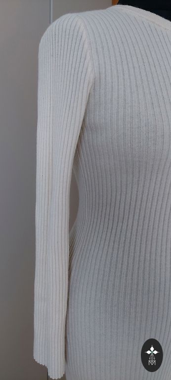 Does not wrinkle. Mannequin measurements: bust 113cm; waist 90cm; hips 118cm. Dress length 122cm. Elastic at the waist and sleeve ends.
