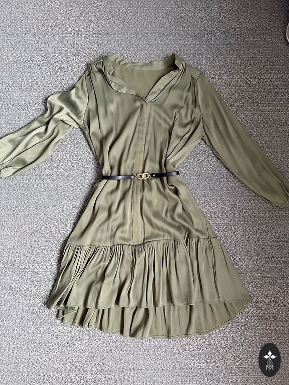 Воздушное, легкое, очень классное платье, длина 84 см, рукава немного прозрачные, на талии резинка + пояс.