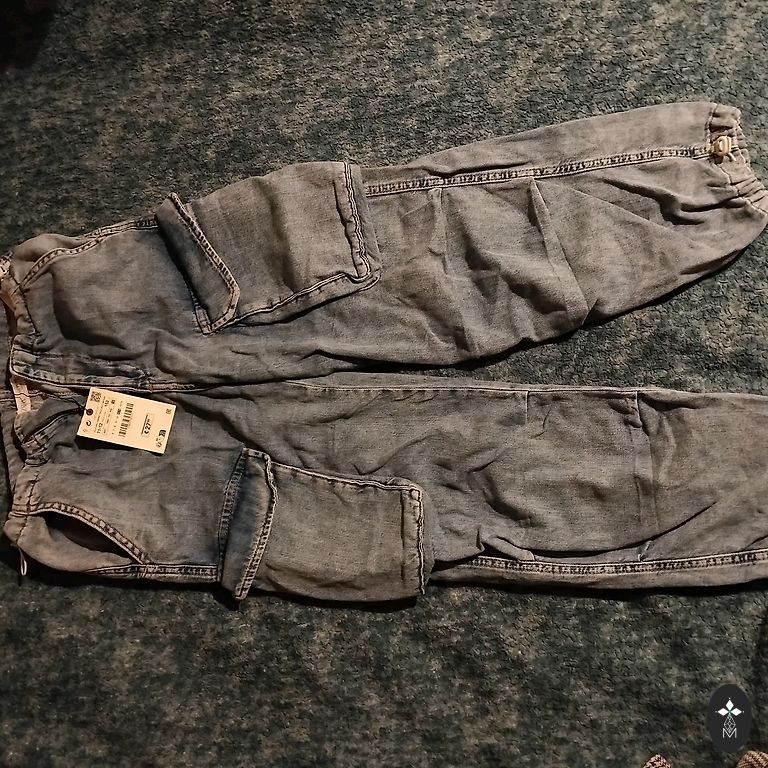 Джинсы, вышивка на передней части штанин, 6/7 лет, небольшой производственный дефект на задней части штанины.