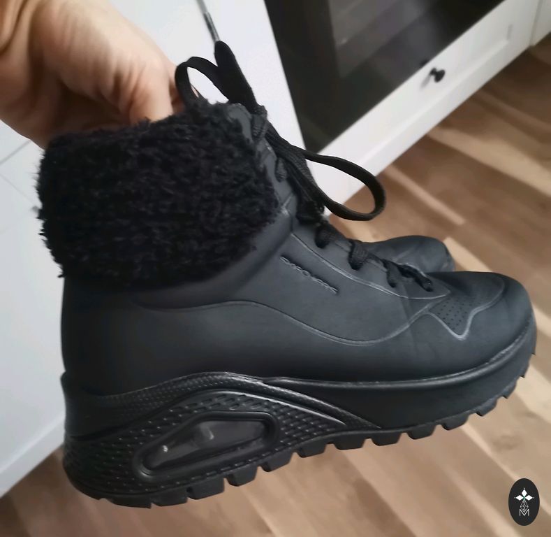 Skechers kevadsaapad, suurus 33, mõõdetud umbes 21 cm. Saapad on ülikerged memory foam sisetallaga, tütar jõudis neid sel sügisel väga lühikest aega kanda, enam ei sobi, defekte pole. Ostetud Weekendshoesist hinnaga 66.99 eurot.