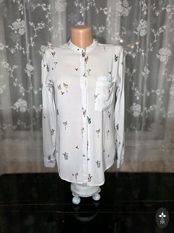 Stilinga ir lengva palaidinė su aktualiu leopardiniu raštu. Laisvas kirpimas, klasikinė apykaklė, užsegimas sagomis. Puikiai dera su džinsais, sijonais ir kelnėmis.