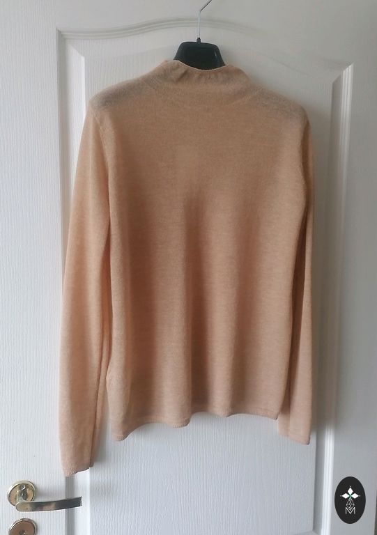 Легкий, очень теплый, пушистый и мягкий ангорский свитер розовато-коричневого цвета. Не носился, бирки срезаны. Указан размер L, будет на рост L. Более свободно подойдет для размера M или S. Пониженная линия плеча, качественный, элегантный, красиво обработанный. Длина спереди 58 см Длина сзади 65 см Ширина под рукавами 62 см Длина рукава 55 см