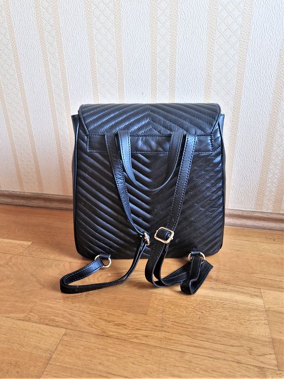 Куплена на официальном сайте. Высококачественная кожаная сумка-рюкзак, в отличном состоянии. Использована всего несколько раз. Выраженный стиль гранж — очень эффектная и заметная. Регулируемые ремни позволяют носить её различными способами: на плече или как рюкзак. Очень стильный и уникальный аксессуар.