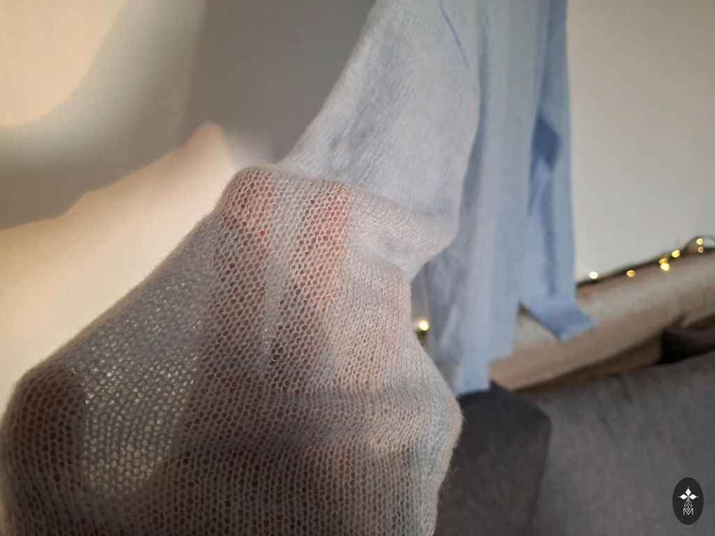 Apačioje elastinė juosta, taip pat rankovių galuose.
