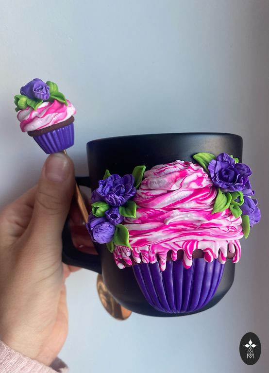 Gaminu polimerinio molio dekoracijas ant puodelių ir šaukštų🌷🌸